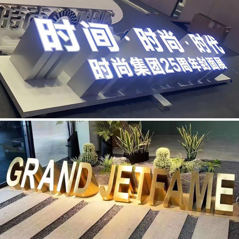 电镀烤漆钛金字门头招牌广告实心金属字不锈钢精工平面字立体灯箱